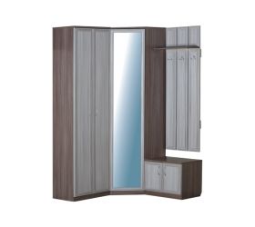 - Шкаф угловой с зеркалом ДЛЯ ПРИХОЖЕЙ ШКУЗ Ясень Шимо темный/Ясень Шимо светлый- 1шт