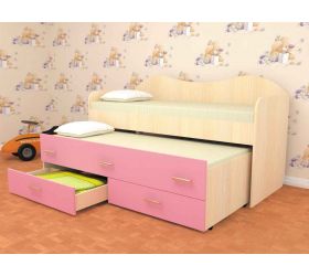 [name] => Кровать детская Жемчужина двухместная 1.8 Дуб молочный/Розовый
