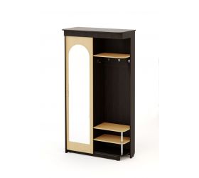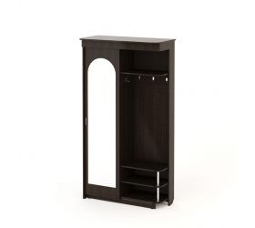 Прихожая «Большая» отлично впишется в Ваш интерьер. За дверью-купе с зеркалом находятся полка и выдвижная штанга для вешалок. Открытая вешалка с козырьком оборудована крючками для одежды и сумок, внизу секция для обуви с двумя полками.