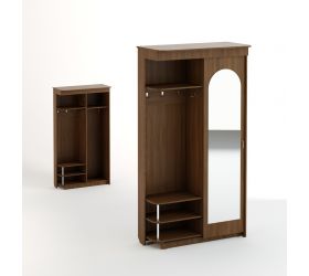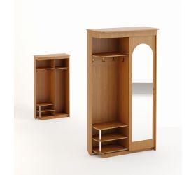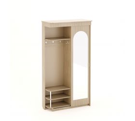 Прихожая «Большая» отлично впишется в Ваш интерьер. За дверью-купе с зеркалом находятся полка и выдвижная штанга для вешалок. Открытая вешалка с козырьком оборудована крючками для одежды и сумок, внизу секция для обуви с двумя полками.