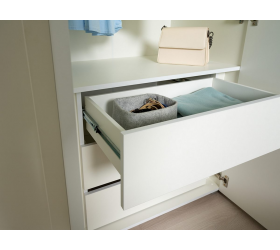Спальный гарнитур Остин белый шагрень / дуб вотан состоит из 13 модулей: